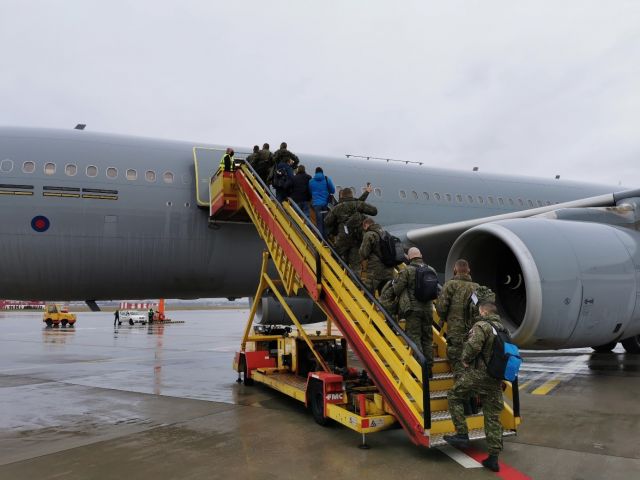 Ďalší dvaja príslušníci NCVD OS SR medzitým v dňoch 3.12. a 10.12.2020 zabezpečovali na letisku Bratislava leteckú prepravu rotujúceho personálu, na ktorú sme tentokrát využili letecký prostriedok Airbus A-330 VOYAGER, patriaci Britskému kráľovskému letectvu (RAF).